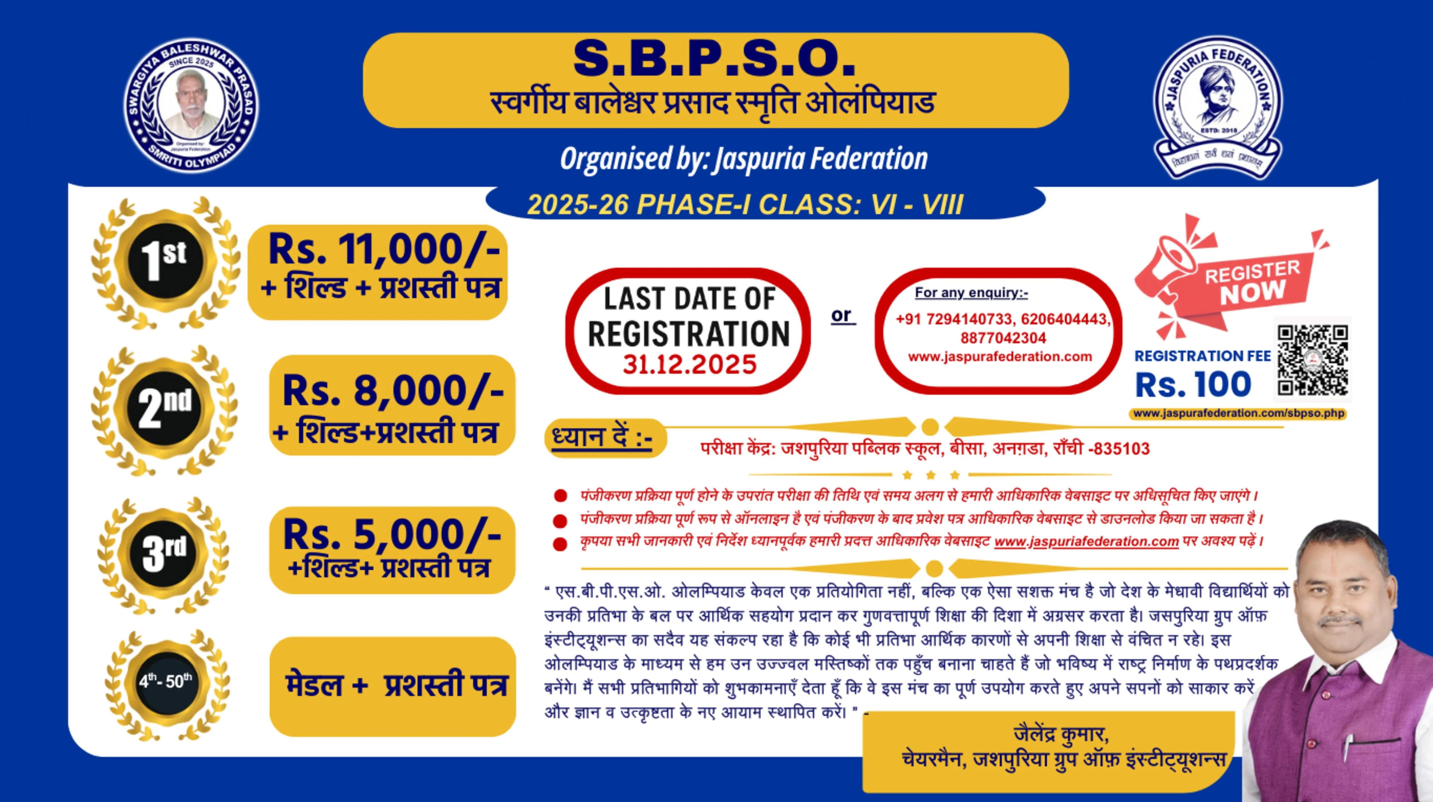 The All India Jaspuria Federation is a nationwide competition designed to identify and foster young talent across multiple fields. It offers students an opportunity to demonstrate their abilities and academic prowess, creating a platform for recognition and personal development.